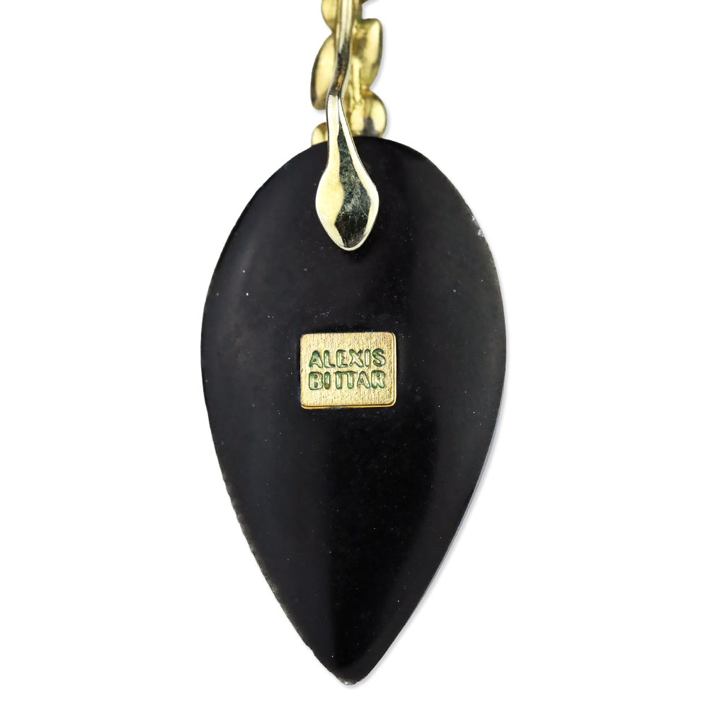 These Alexis Bittar earrings showcase botanical elegance with their lavender lucite leaves and sparkling crystal accents. The elongated drop design creates a graceful statement that transitions beautifully from day to evening wear.