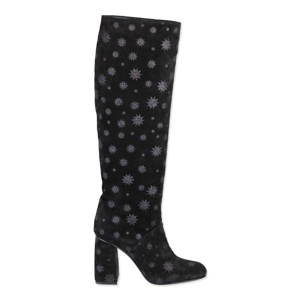 Red Valentino Black Suede Glitter Star Knee High Boots