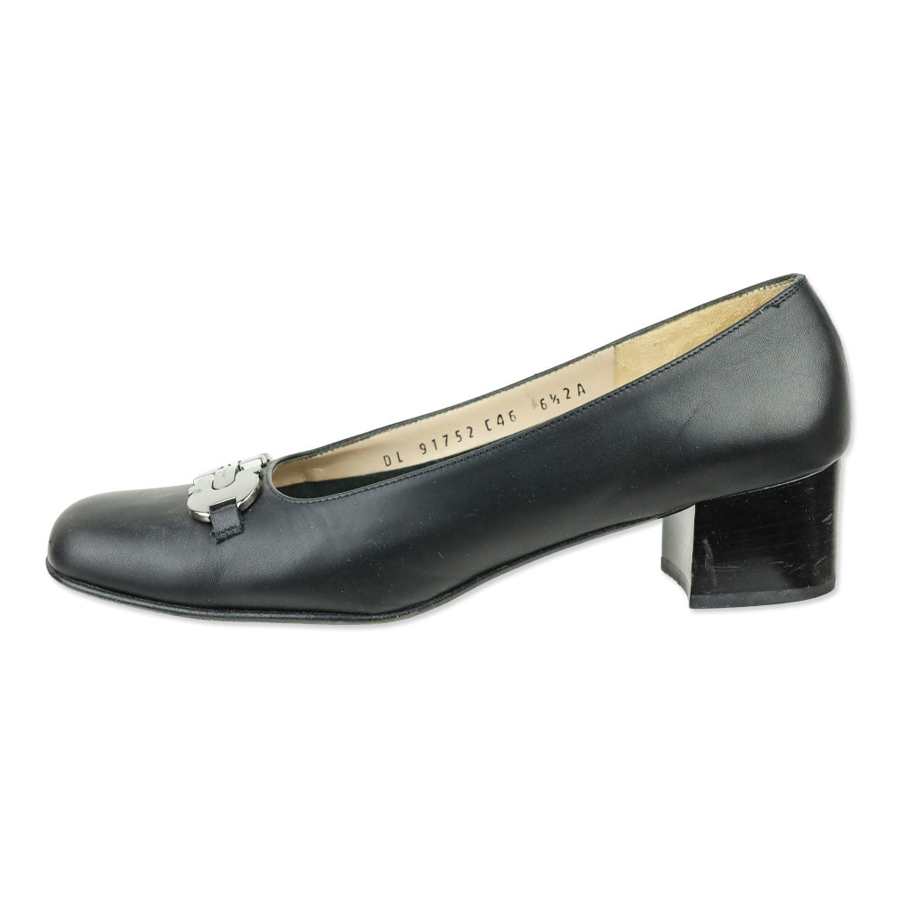 Salvatore Ferragamo Black Calf Leather Gancini Accent Pump