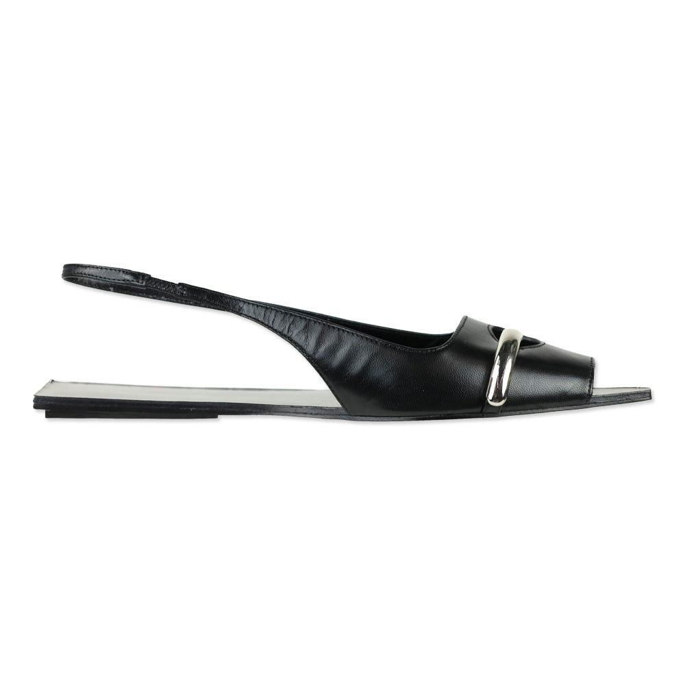 The Tory Burch Black Goat Leather Pierced Slingback Flat blends modern edge with refined craftsmanship. Designed with cut-out detailing, a pointed open toe, and a sleek slingback silhouette, these flats bring effortless polish to any look.