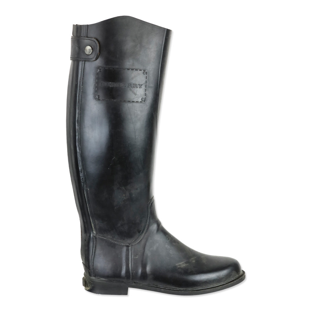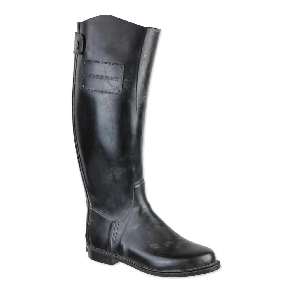 Burberry London Black Rubber Zipper Knee-High Rainboots