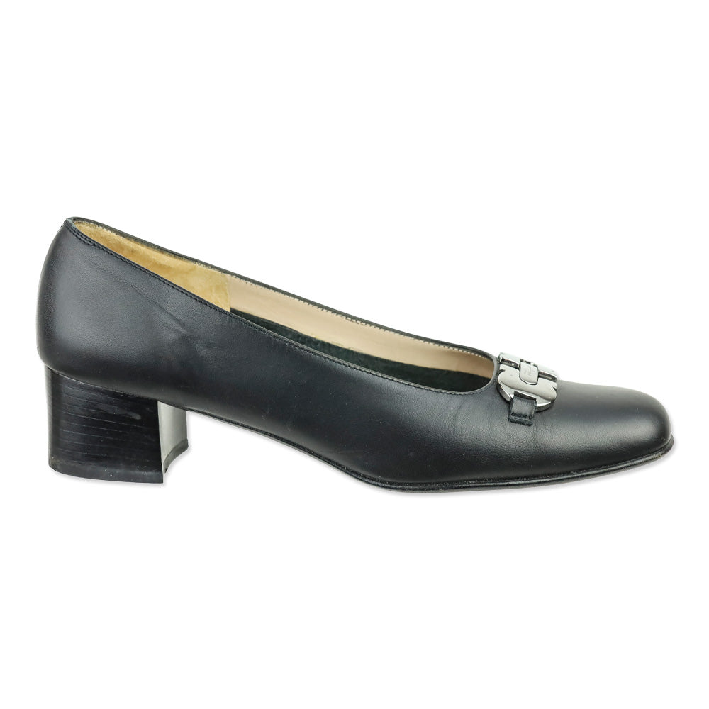 Salvatore Ferragamo Black Calf Leather Gancini Accent Pump