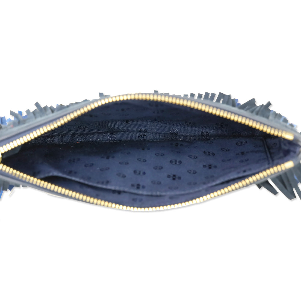 Tory Burch Multi Blue Nubuck Fringe Zipper Wristlet
