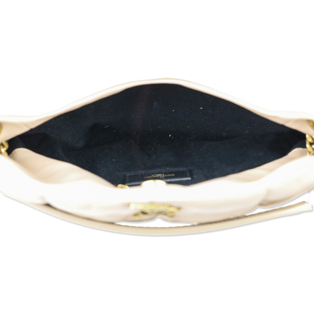 The Yves Saint Laurent Dark Beige Quilted Nappa Leather LouLou Puffer Small Shoulder Bag captures timeless Parisian allure in a soft lambskin silhouette. With its chevron quilting, sliding chain strap, and elegant gold-tone hardware, this YSL favorite transitions seamlessly from day to night.