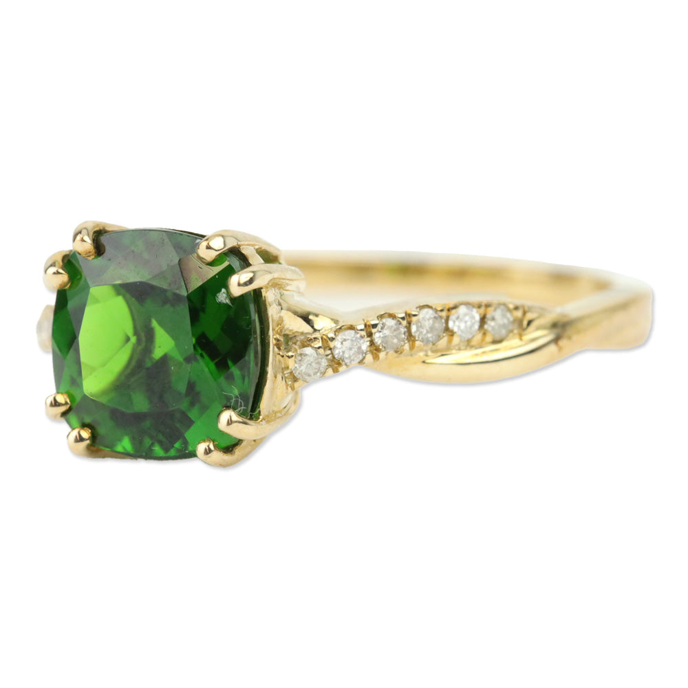 Luxoro 10K Yellow Gold Cushion Chrome Diopside and I2 Diamond Solitaire Ring