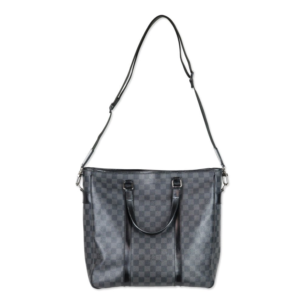 Louis Vuitton Tadao PM, Damier Graphite tote, 13.5 inch LV bag, 2008 collection bag, unisex designer tote, graphite canvas tote Urban utility chic, 2008 archival release, tonal damier subtlety, organizational intelligence, silvertone hardware, patina-approved vintage, professional-casual hybrid