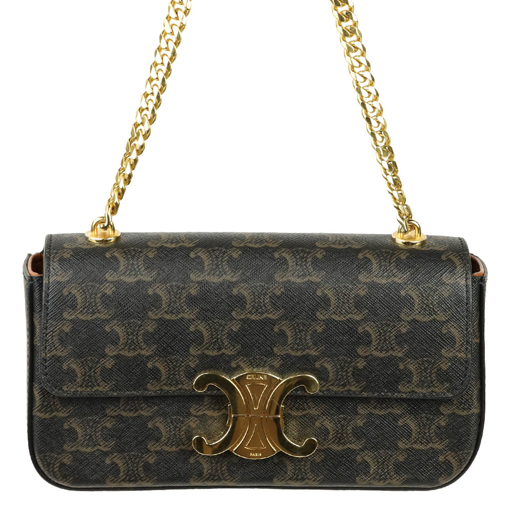 Celine Triomphe Coated Canvas and Calfskin Claude Chain Shoulder Bag