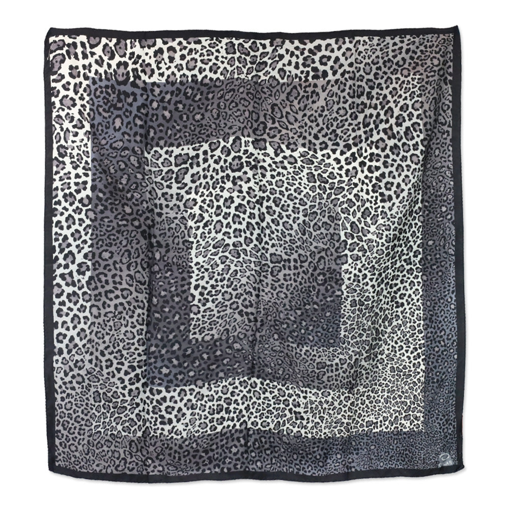 Oscar de la Renta Grey Leopard Print Silk Scarf