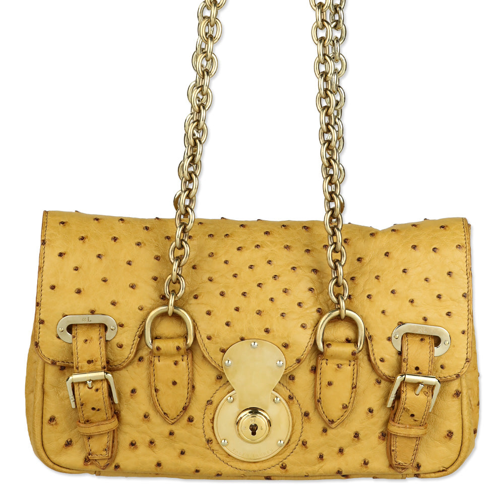 Ralph Lauren Tan Ostrich Leather Ricky Chain Shoulder Bag