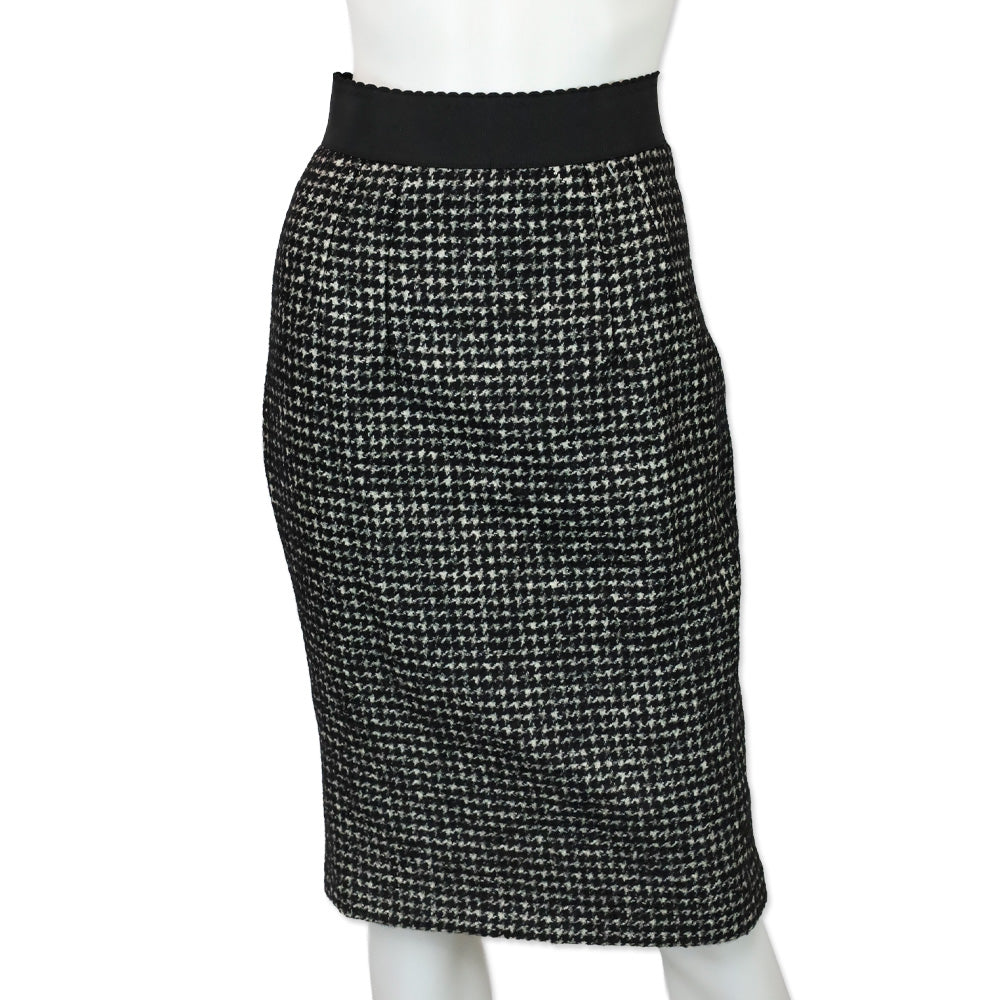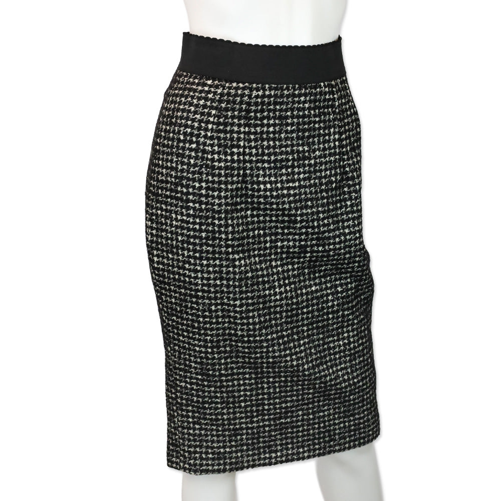 Dolce & Gabbana Black/Grey Houndstooth Wool Blend Midi Pencil Skirt