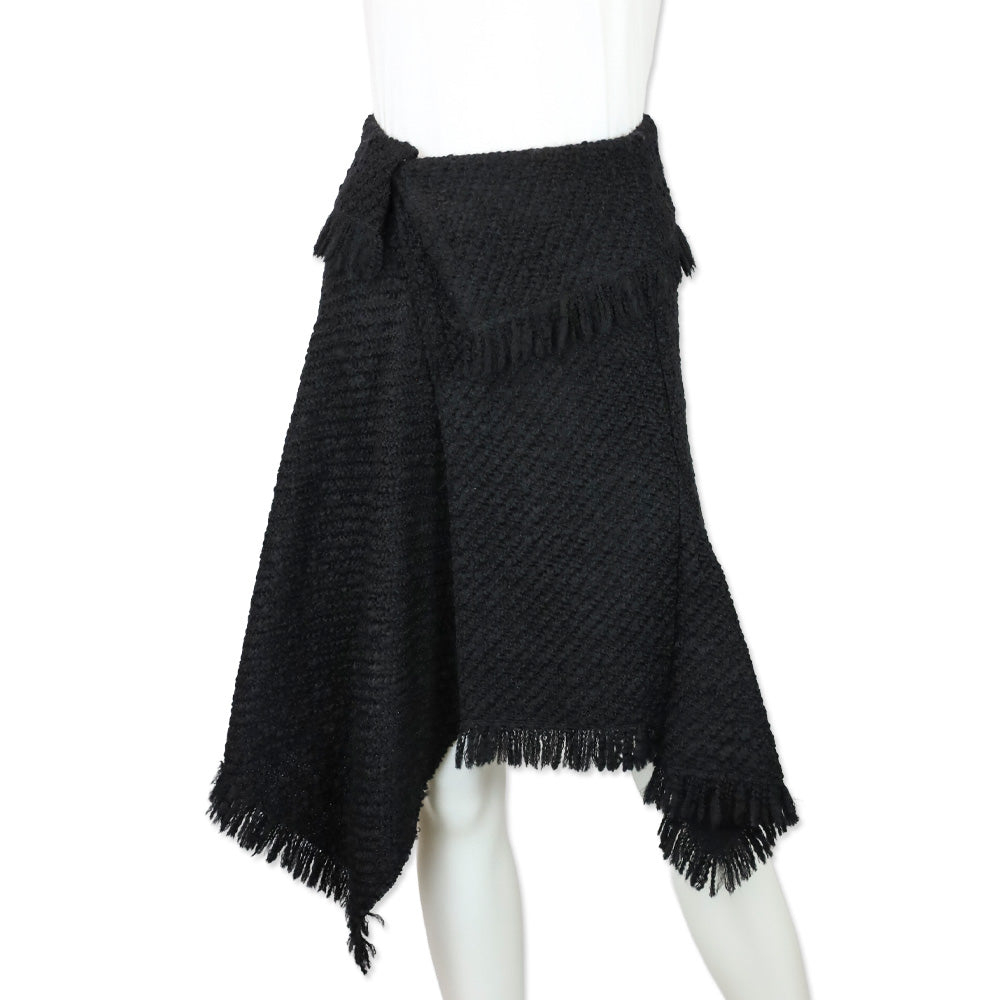 Isabel Marant Jupe Idini Black Wool Asymmetrical Fringe Midi Skirt