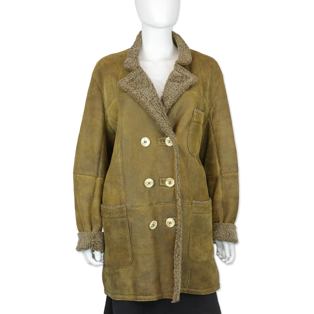Loringhoven Tan Suede Shearling-Lined Double-Breasted Coat