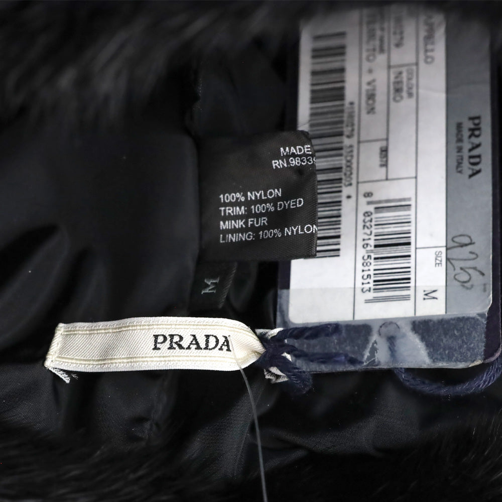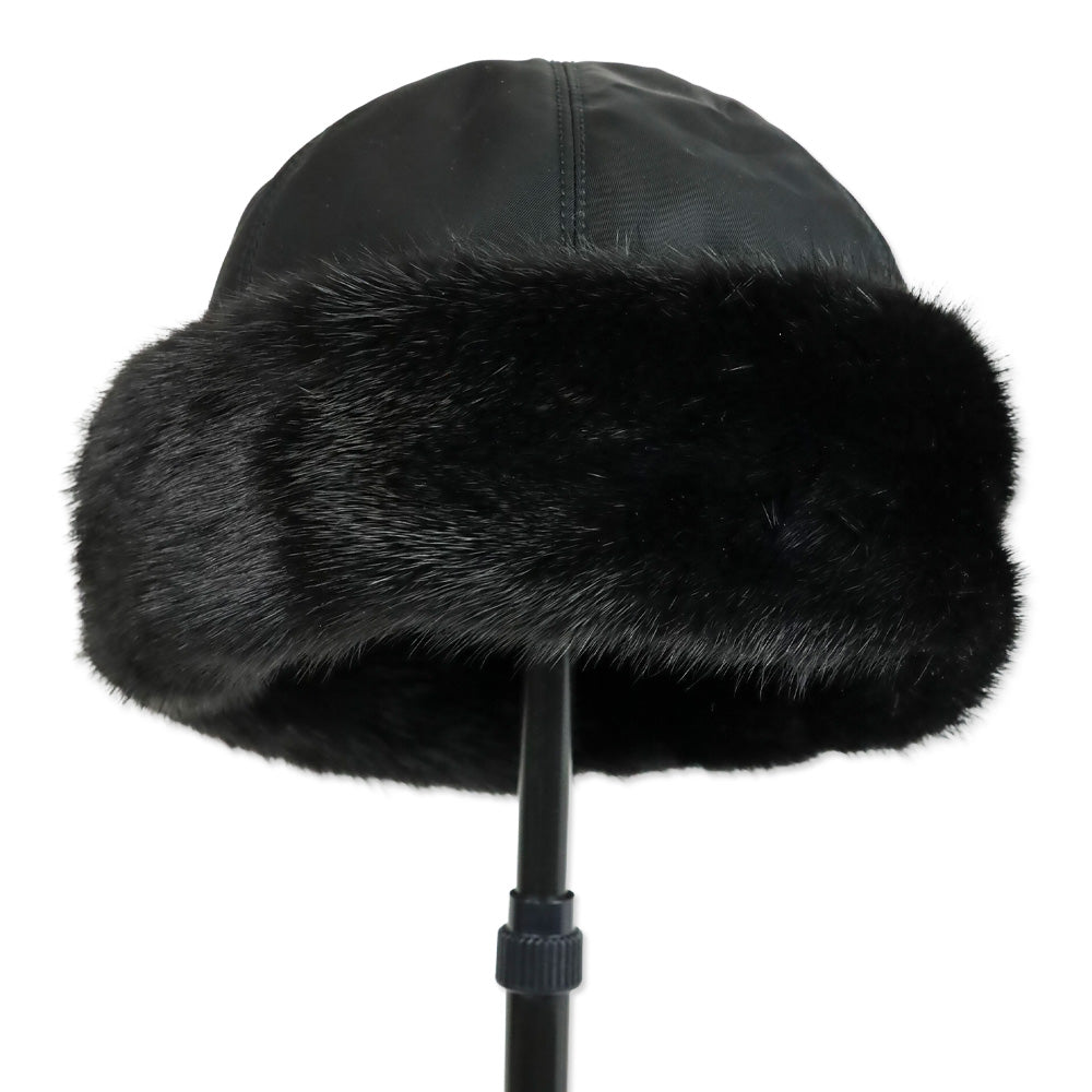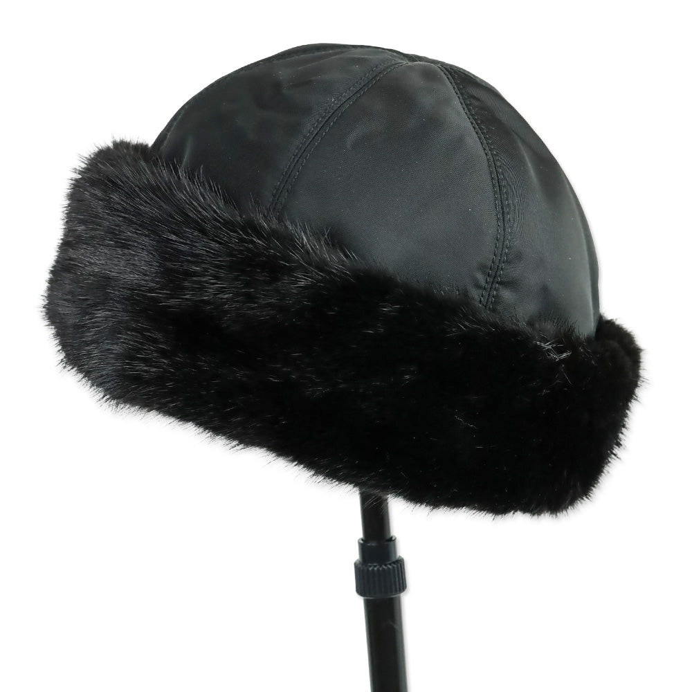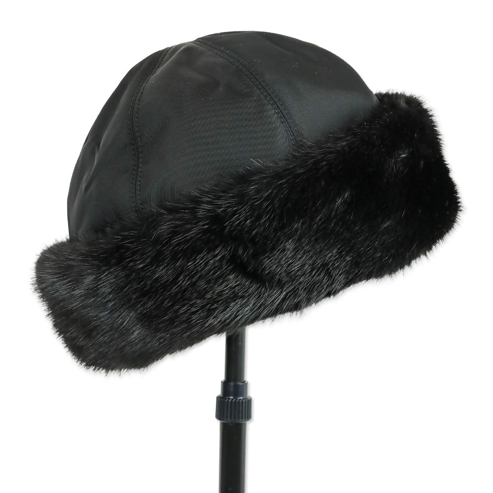 Prada Black Mink Fur Trim Nylon Hat