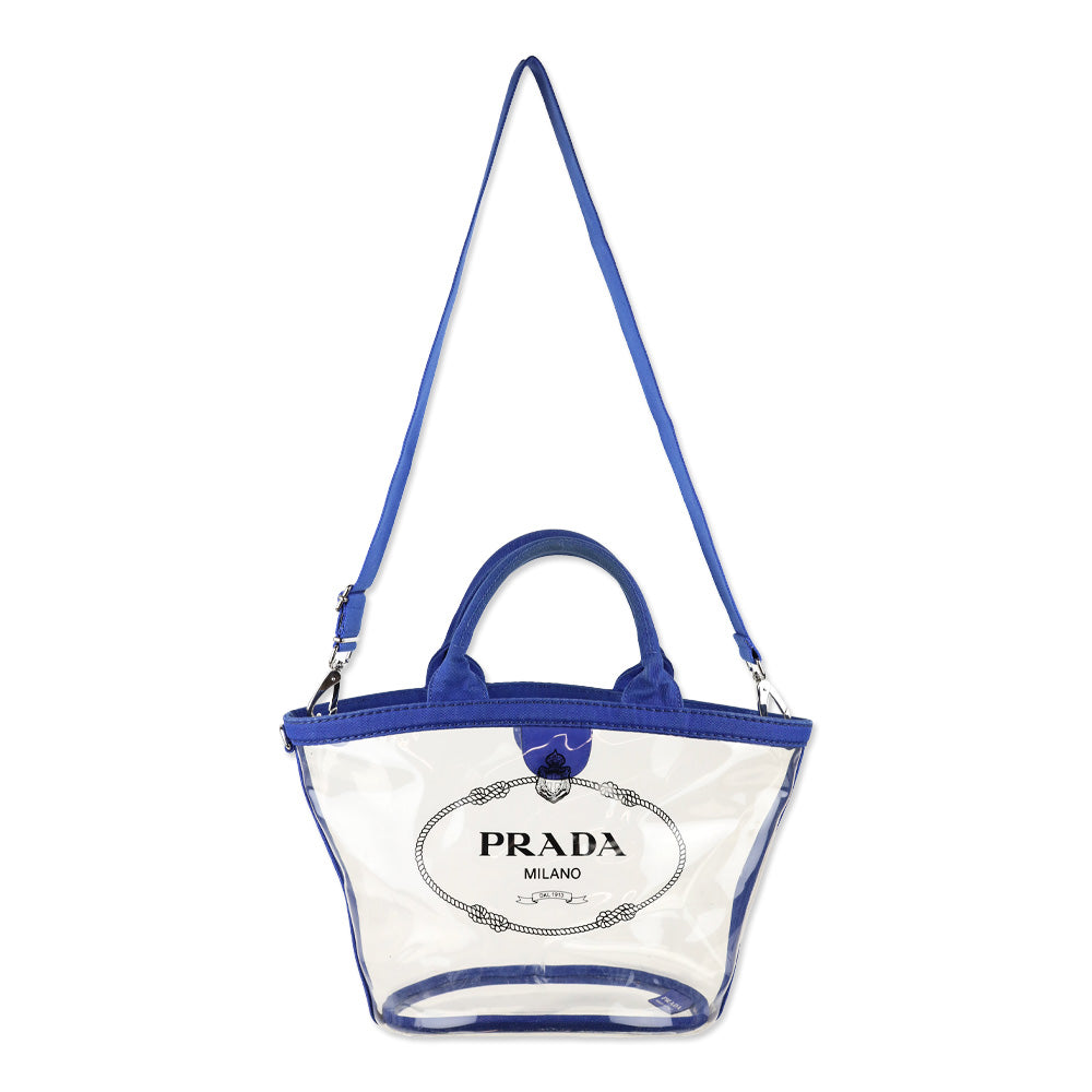 Prada Cobalt Blue Canvas/PVC Plastic Logo Tote Bag