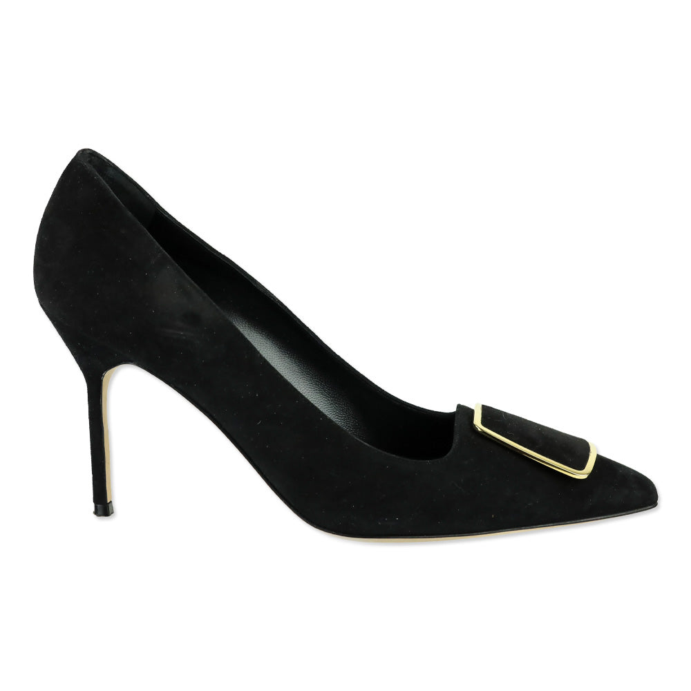 Manolo Blahnik Gonone 90 Black Suede Pump