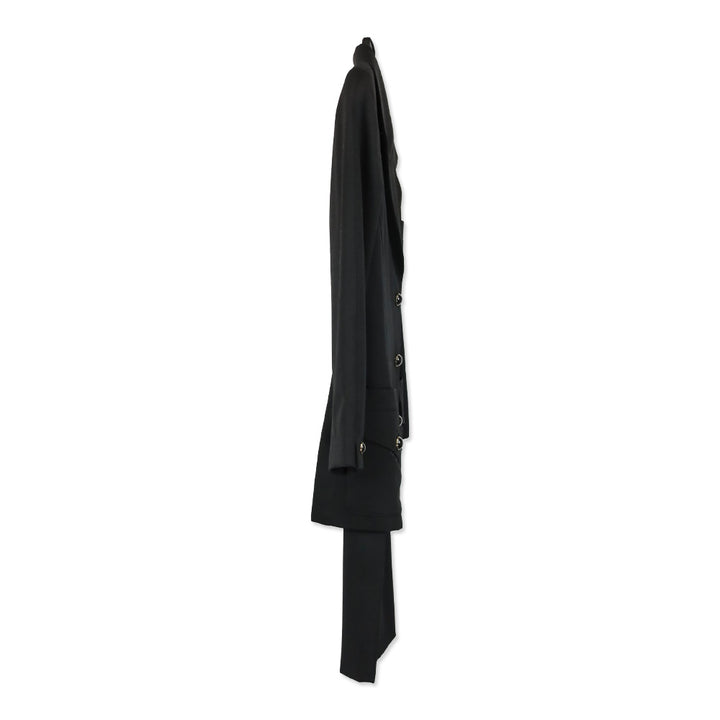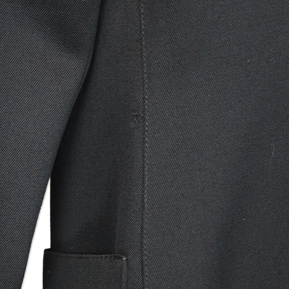 • Details: Clover lapel style, Patch and button flap pockets, 3-button front closure, Black domed buttons with gold sawtooth trim, Single button cuffs, Chest welt pocket