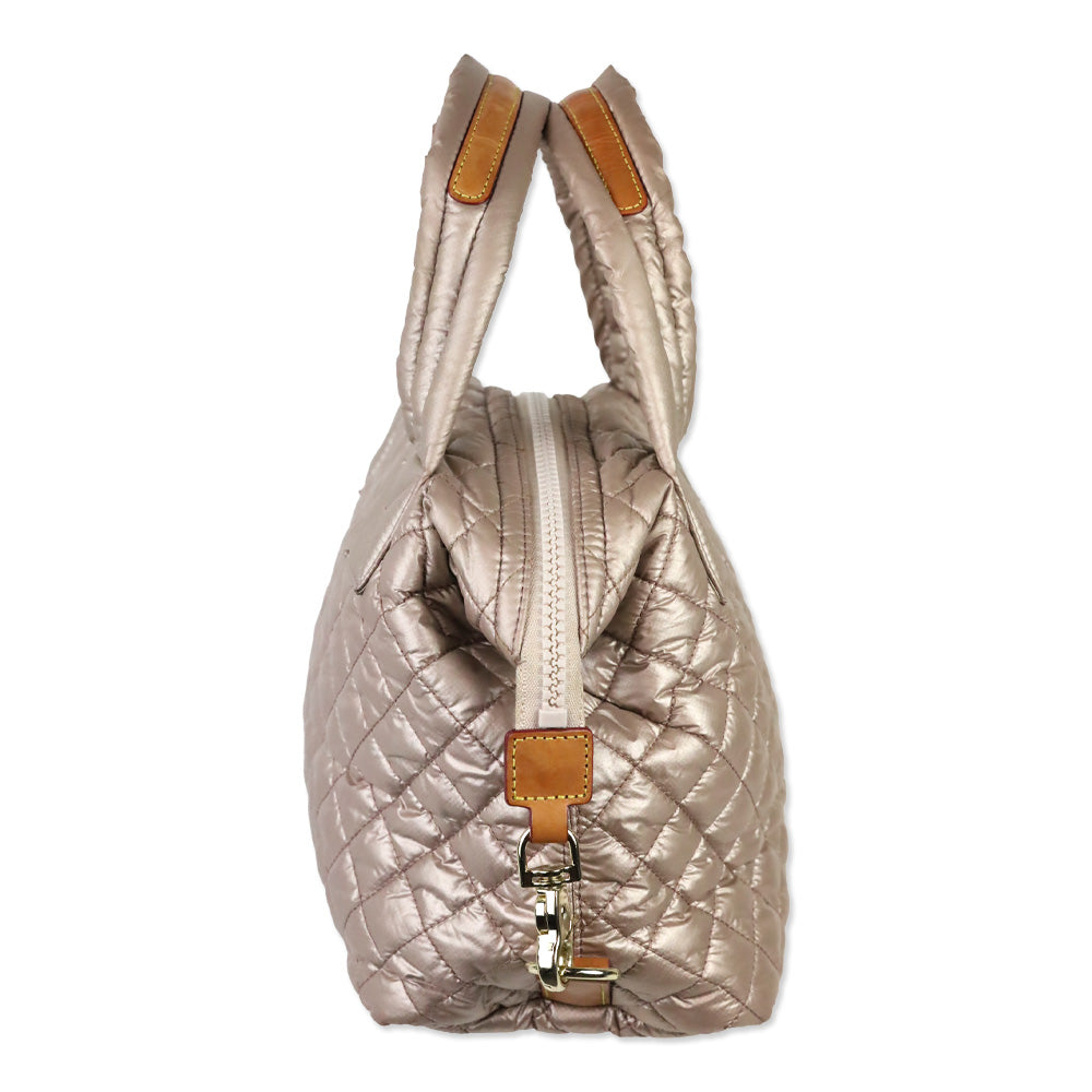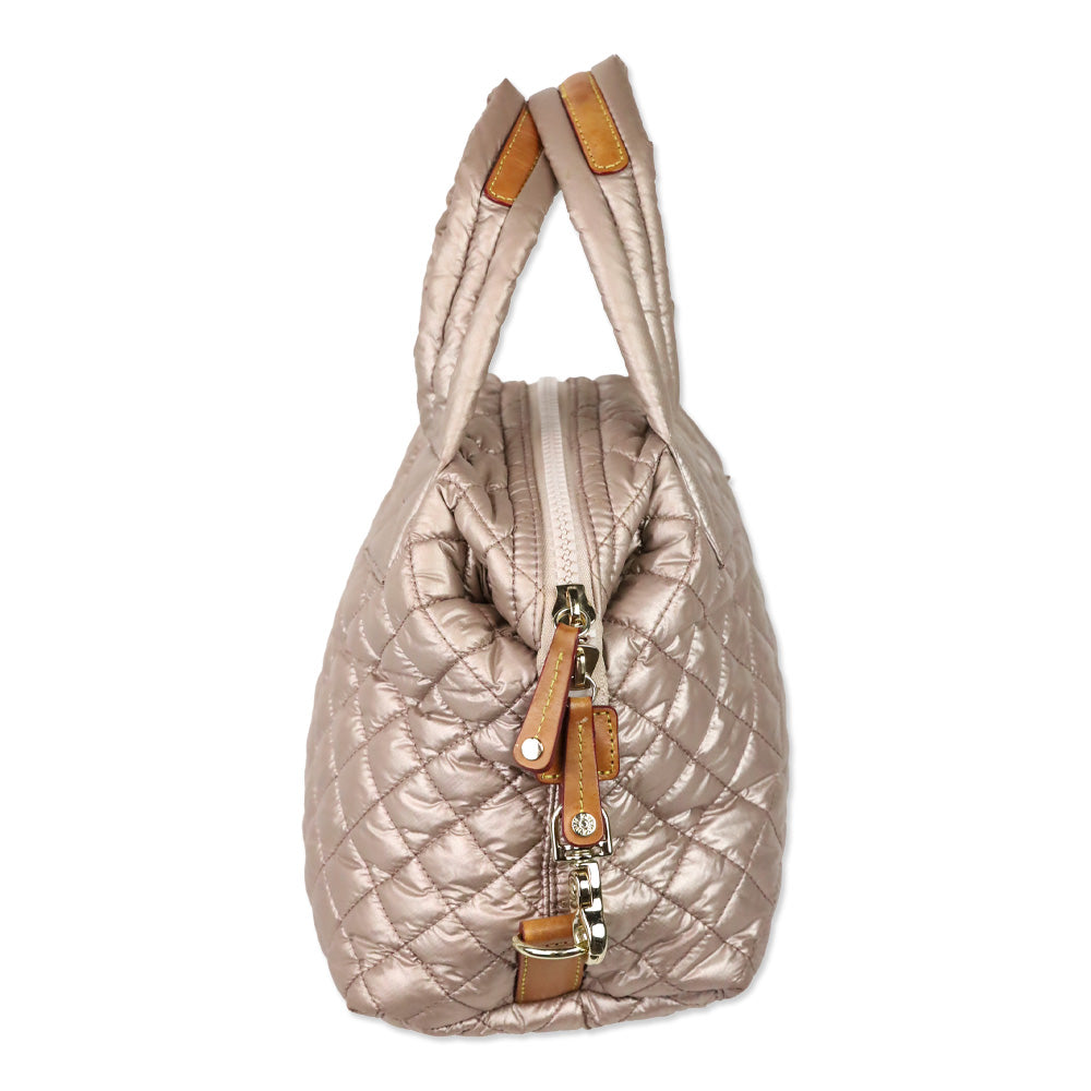 The MZ Wallace Pale Rose Gold Metallic Small Sutton Deluxe pairs lightweight versatility with a sleek quilted finish that transitions effortlessly from daily errands to evening plans. Its roomy interior and carry d-loop make it a practical yet polished essential.