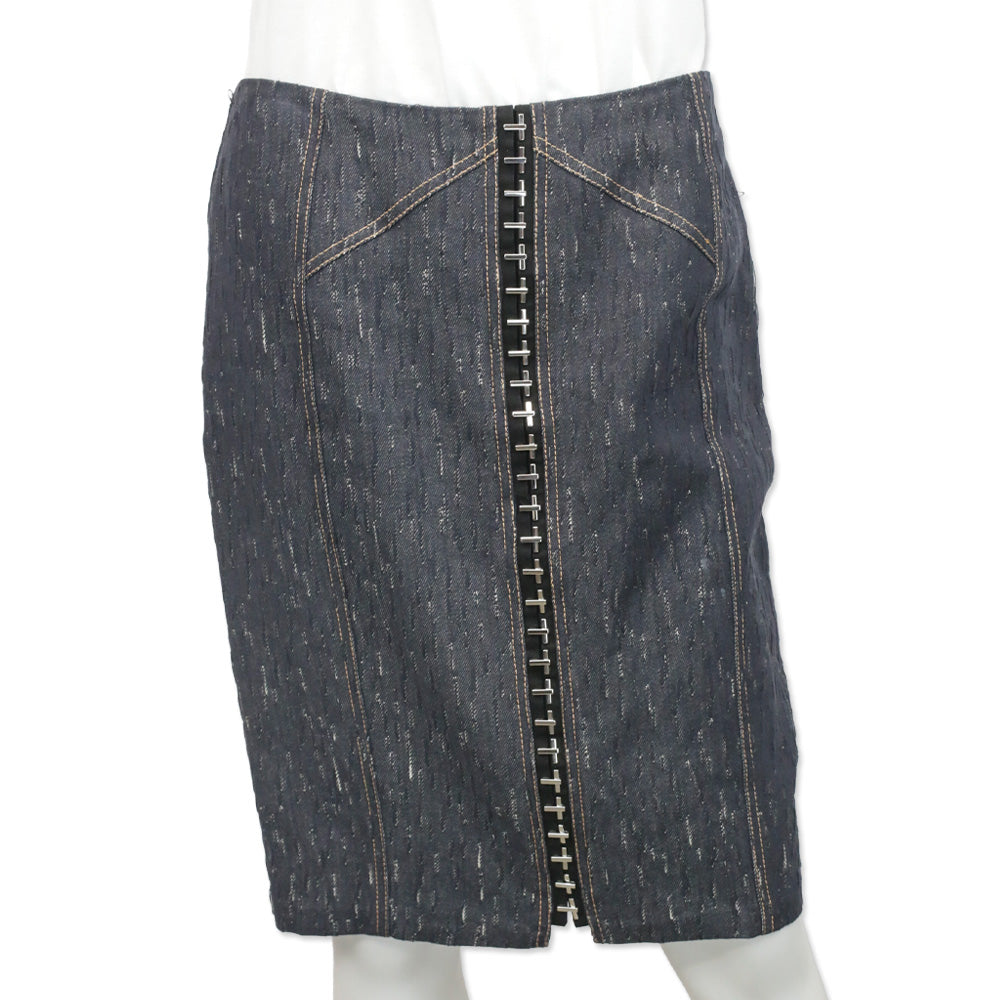 Versace Indigo Textured Denim Hook Detail Pencil Skirt