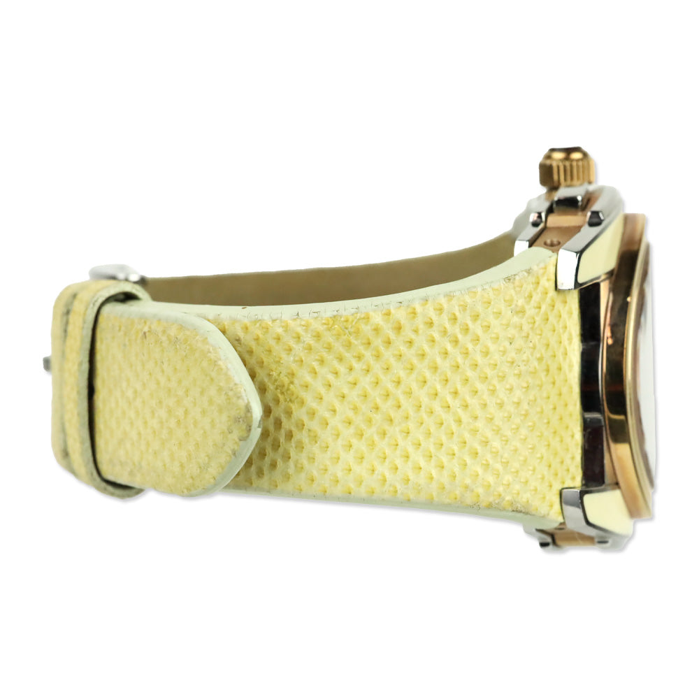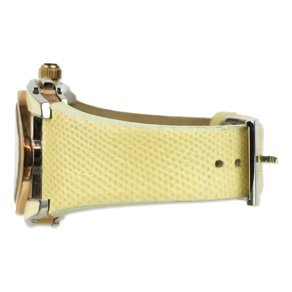 • Condition: Used but good condition; note there are minor scratches on gold trim and minor color tarnishing. The watch band has yellowed with age, but still excellent condition.