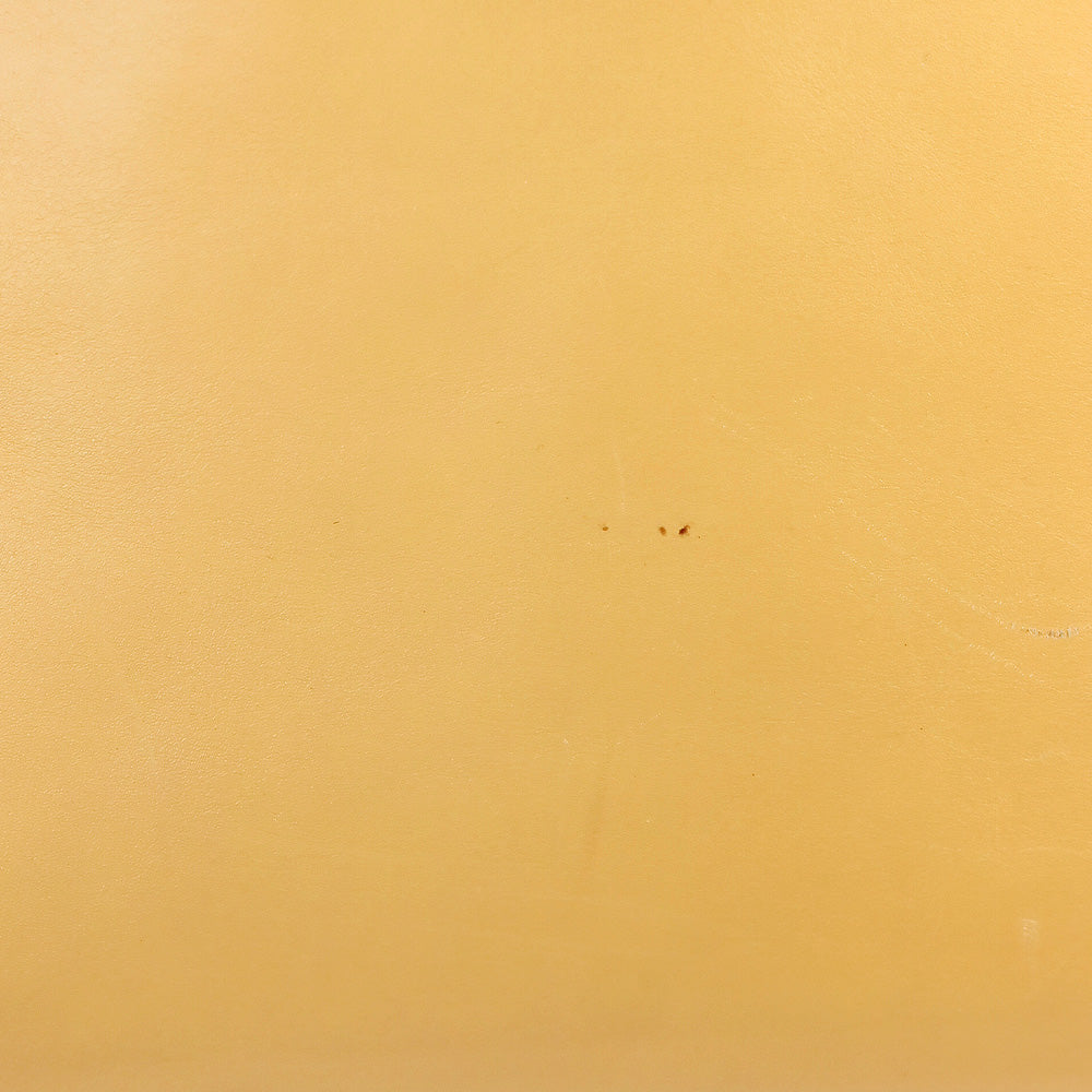 • Condition: Well-loved. Scratches on back panel, creasing throughout leather, discoloration and wear at corners, wear on metal feet studs.