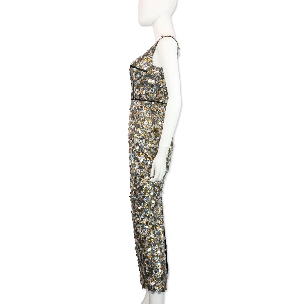 Abyss by Abby Tatiana Gold/Silver Chunky Sequin Sleeveless V Neck Dress