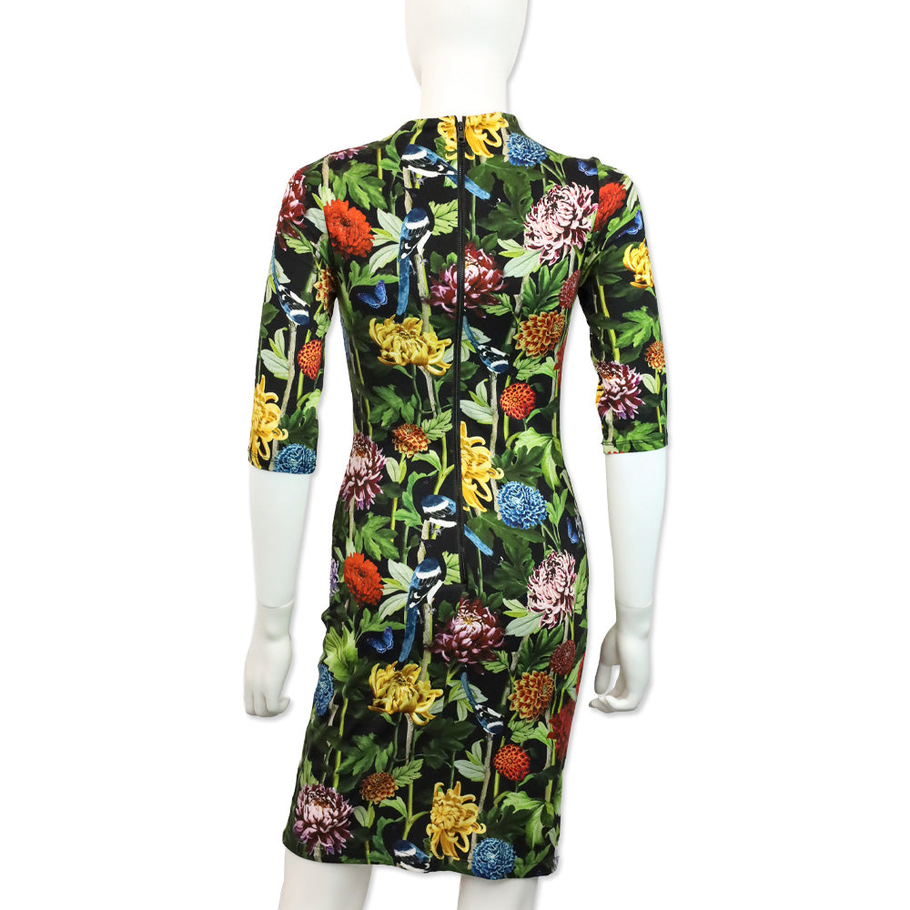 Alice & Olivia Floral High Neck 3/4 Sleeve Midi Dress