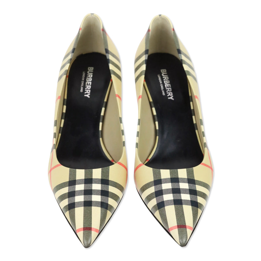 Step into timeless British heritage with these Burberry Pointed-Toe Pumps. Featuring the iconic Archive Beige house check, these heels are a sophisticated blend of classic equestrian roots and modern luxury. The 55mm (approx. 2.25") heel offers the perfect "midi" height for all-day comfort, while the addition of a discreet rubber sole platform provides enhanced durability and grip.