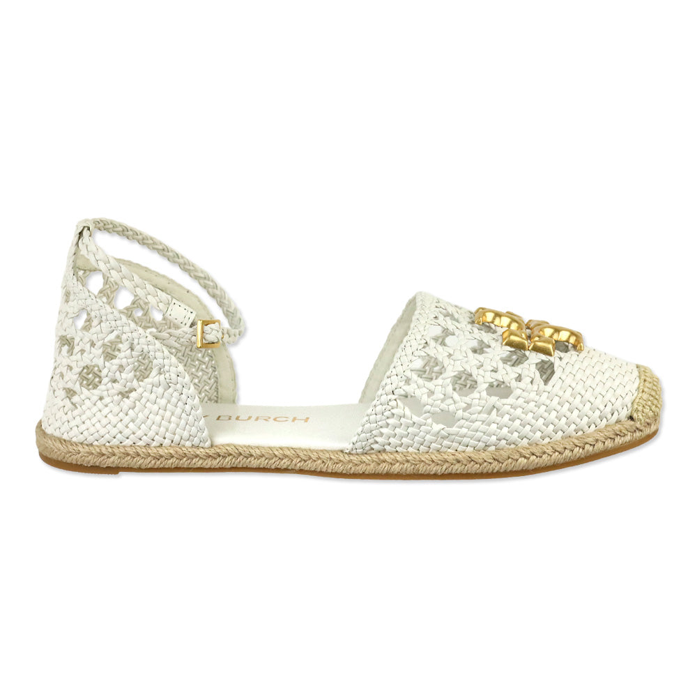 Tory Burch Ivory Eleanor Woven Leather D'orsay Espadrille Flats